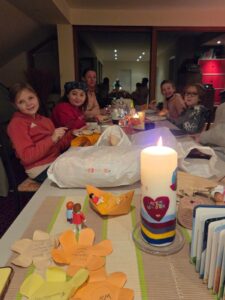 Kurz vor dem heiß ersehnten Weihnachtsfest trafen sich die Kommunionkinder zur Weihnachtsfeier in den Gruppen. Da wurde gebastelt, gesungen, mit Wasserfarben gemalt und Plätzchen verspeist – eine Gruppenstunde ganz ohne vorgegebenes „Programm“, doch genauso zu Herzen gehend, denn die Gruppen sind längst fest zusammengewachsen und die Rückmeldungen bei den Gruppenleiterinnen-Runden zeigen immer: Diese Kommunionvorbereitung ist einfach wunderschön – und schafft hoffentlich Erinnerungen, die ein Leben lang ins Herz eingeschrieben sind.