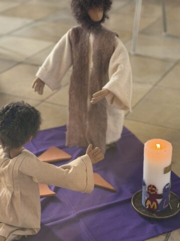 in einer ruhigen, vertrauenvollen und herzlichen Atmosphäre gingen die Kinder, begleitet von ihren Gruppenleiterinnen, einzeln zur Beichte. Vor dem Altarraum war eine Szene aus dem Gleichnis vom barmherzigen Vater aufgebaut, die den Kindern vor Augen führte: Wer sich von Gott seine Last von den Schultern nehmen lässt, geht befreiter durchs Leben und bekommt die Chance, es künftig besser zu machen. Am Ende lösten sich die Beichtzettel in Rauch auf – und jede Gruppe feierte ein kleines Versöhnungsfest.