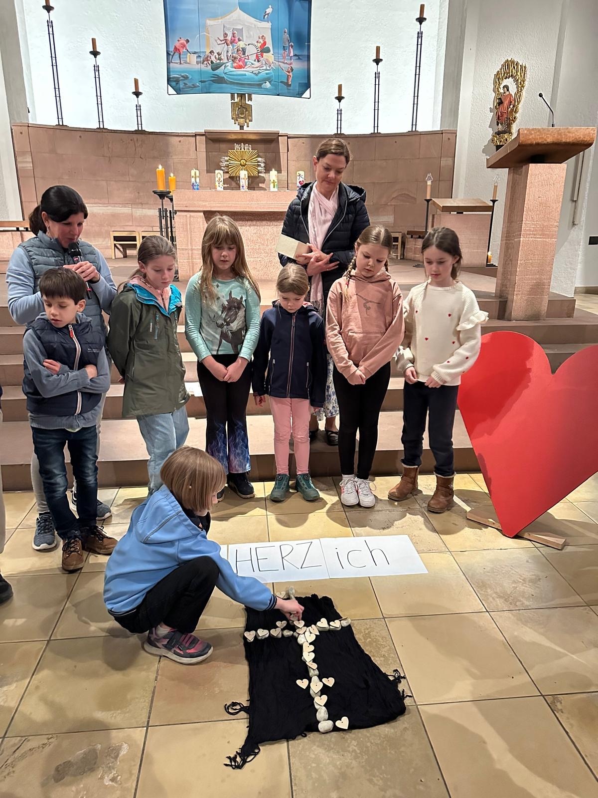 Diese Last haben die Kommunionkinder im Freitagsgottesdienst in Form eines Steins ganz spürbar in die Hand bekommen. Wie tröstlich, dass wir in all den schwierigen Situationen unseres Lebens auf Gott vertrauen dürfen, der barm-Herz-ig