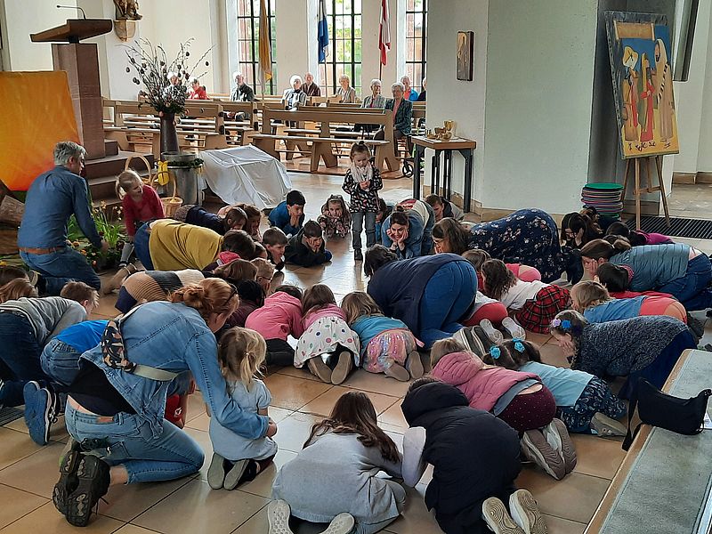 Unter diesem Motto stand der österliche Familiengottesdienst am vergangenen Sonntag 14. April. Gespannt schauten und lauschten zahlreiche Kinder der Geschichte von Katharina und Kaiser Maxentius in Wort und Bild, die erzählt, wie die junge Frau dem römischen Kaiser mit einem Ei erklärt, wie aus etwas scheinbar Starrem und Toten neues Leben entstehen kann. So verkündete sie die Auferstehung Jesu.