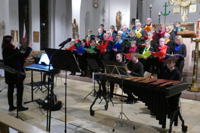 Auch unsere Gemeindereferentin Simone Büttner war beeindruckt und berichtete: „Die Mischung aus Chor, kleinen Gruppen, Instrumentalstücken und Mitsingen war sehr abwechslungsreich. Die Sängerinnen und Sänger haben viel Begeisterung gezeigt. Es war ein Hoffnungslicht im grauen November.“