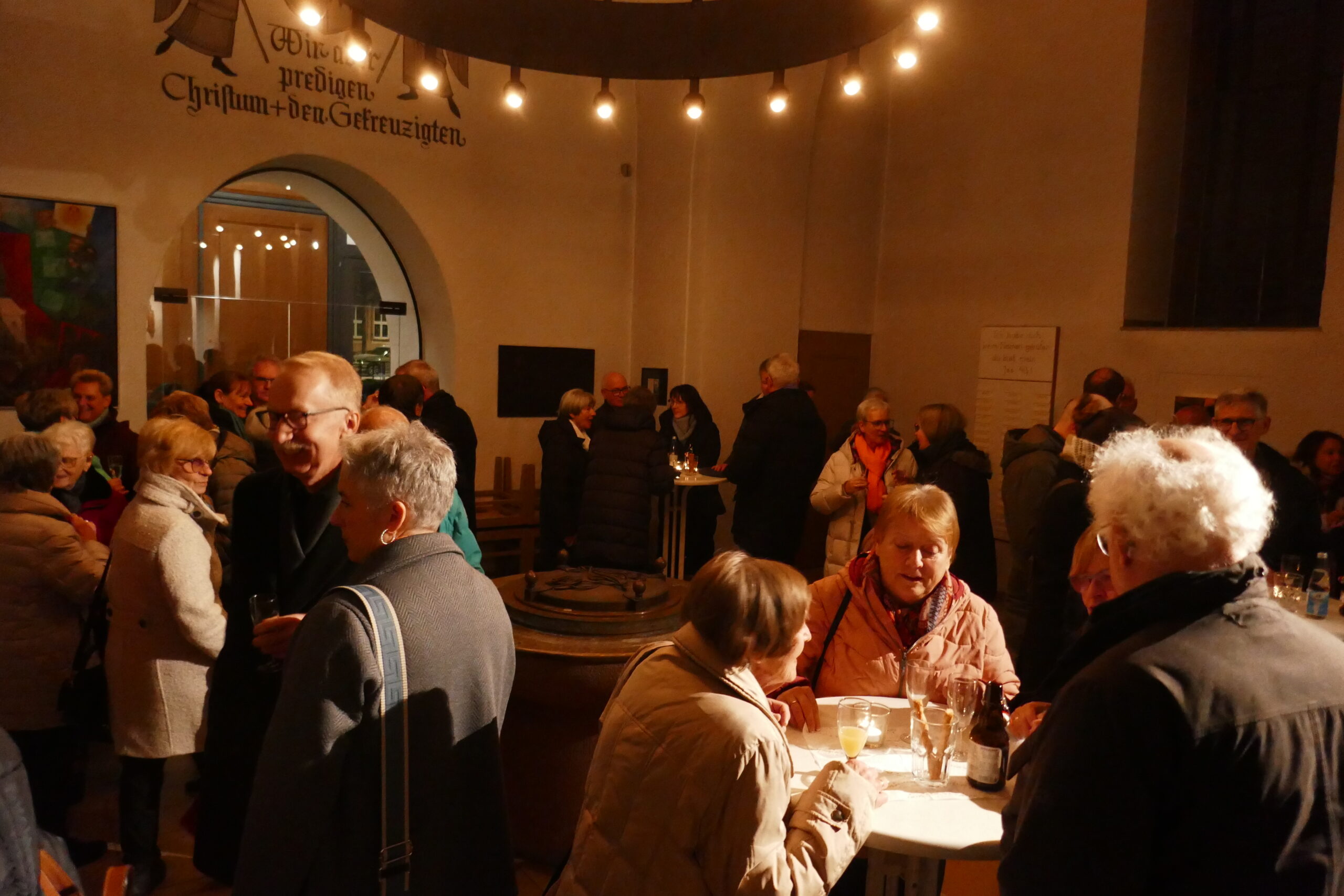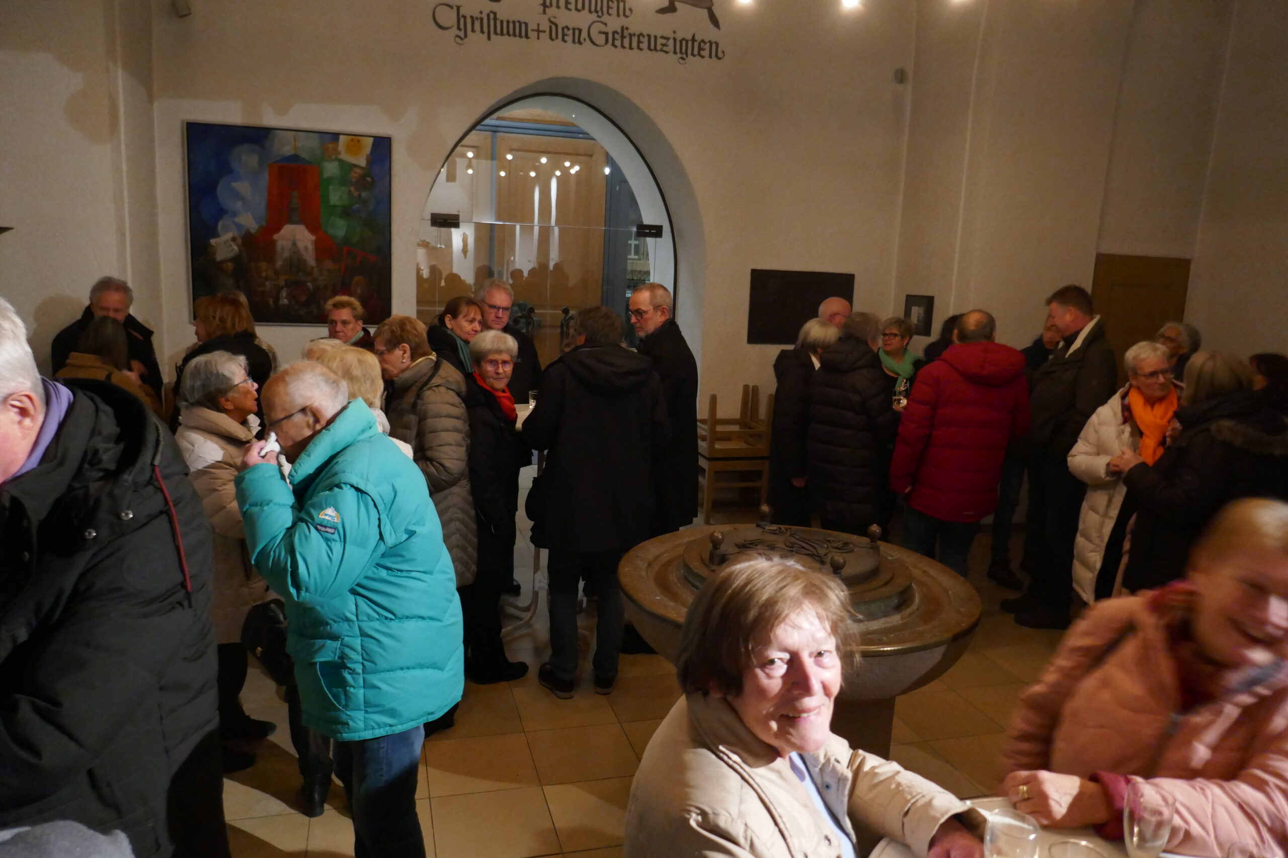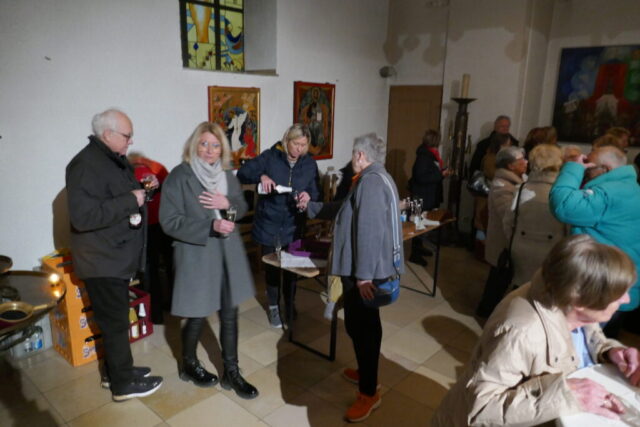 Nach dem Konzert gab es die Möglichkeit zum Austausch. Viele nutzten die Gelegenheit, miteinander ins Gespräch zu kommen und eine Spende für den Neubau des Hauses der Begegnung zu geben.
