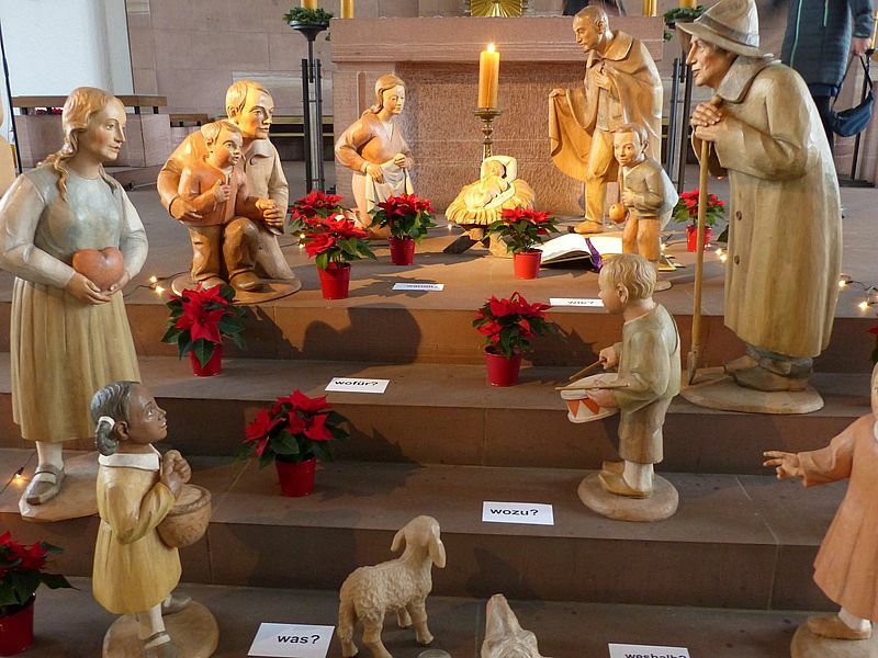 Zu Ehren der drei Frankenapostel Kilian, Kolonat und Totnan Eine bunte Gemeinschaft feierte am vergangenen Sonntag miteinander auf dem Kirchplatz Familiengottesdienst. Mit Eglifiguren, die die Kinder auf den Treppenstufen unserer