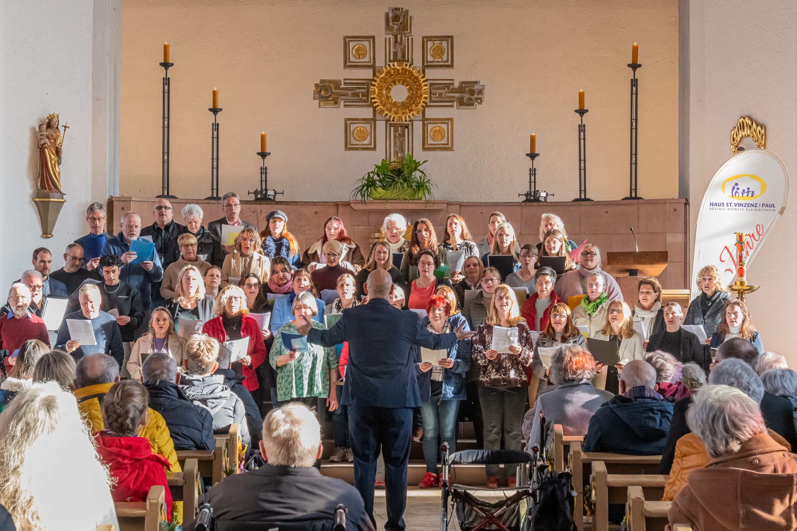 Über 50 haupt- und ehrenamtliche MitarbeiterInnen hatten sich für den Chor begeistert und trugen mit drei Liedern zur Gestaltung des Gottesdienstes bei.